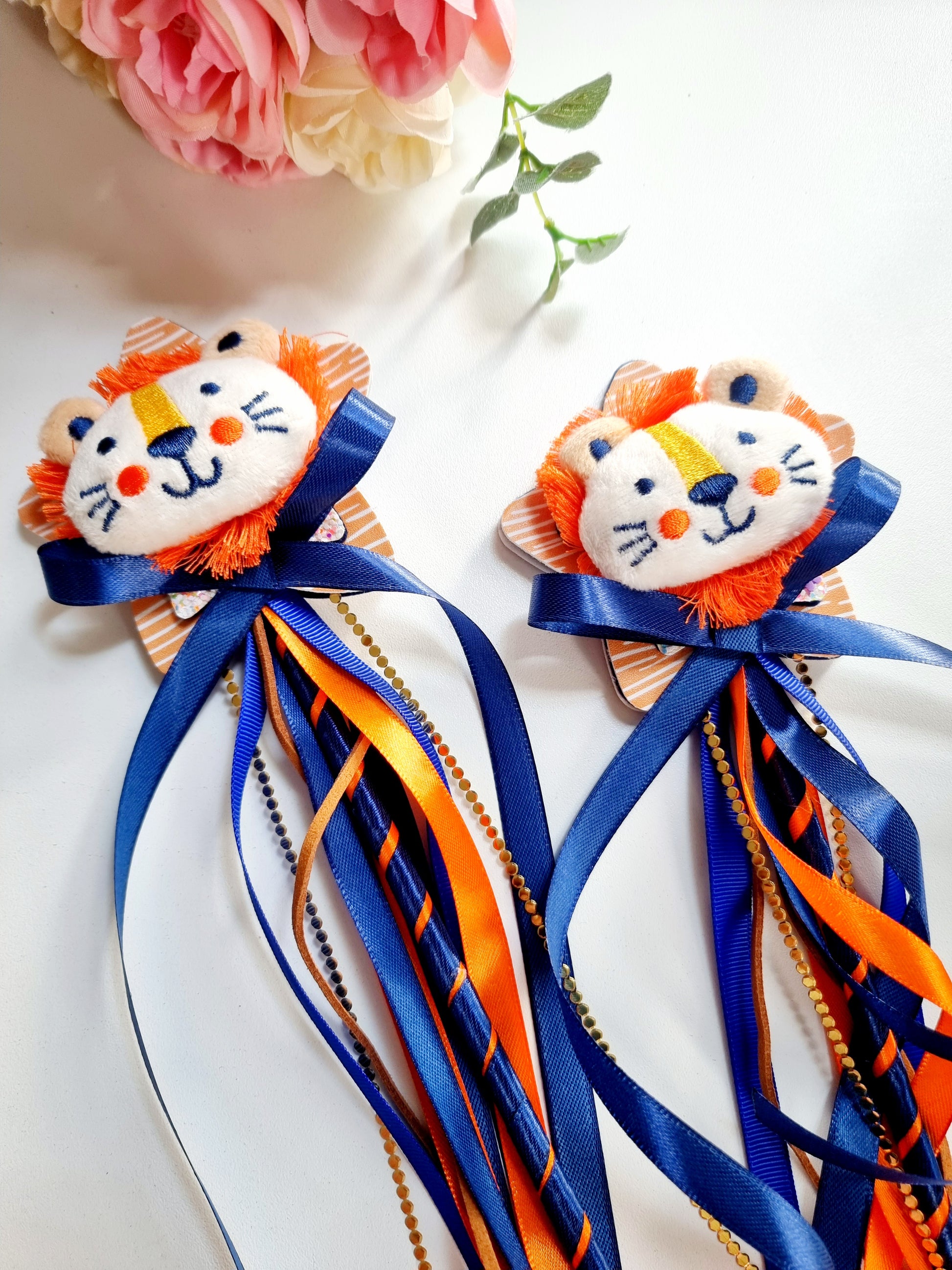 Made on a wooden stick, long ribbons and glittering star