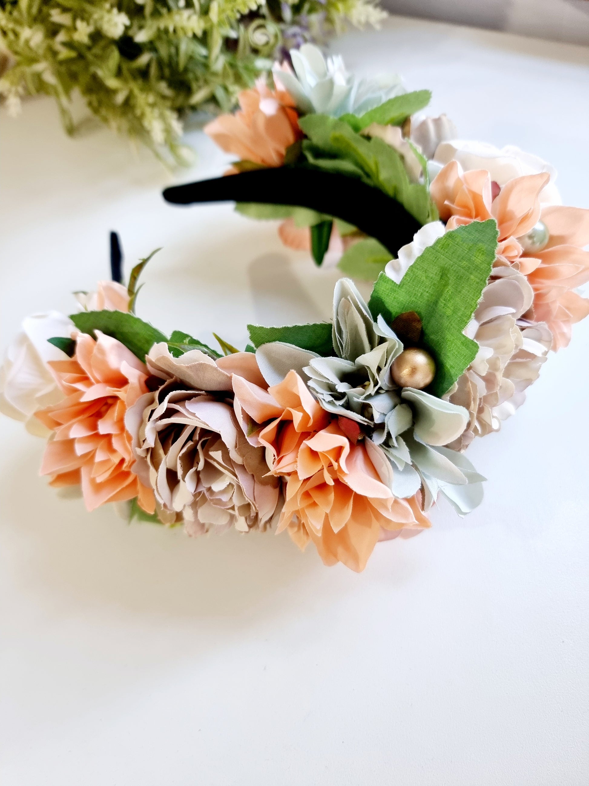 XL Flower Headband is suitable only for adults or older kids. This is best recommended on weddings, photo shoots, baby showers, part of a costume and/or other special events.